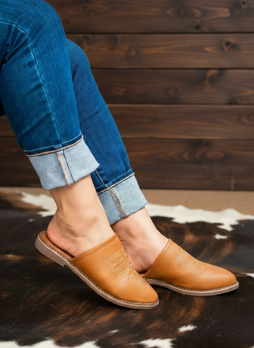 Elevate your everyday with AVERY Tan mule. A warm, Western inspired essential with effortless slip on style.